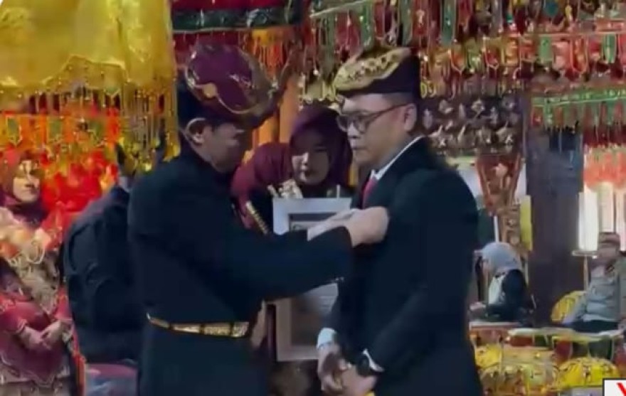 Irjen Pol Drs.Helmy Santika,SH.,S.I.K.,M.Si secara resmi menerima gelar adat dari kerajaan adat paksi pak skala bekhak kepaksian pernong acara prosesi berlangsung di genung dalom kepaksian pernong ,